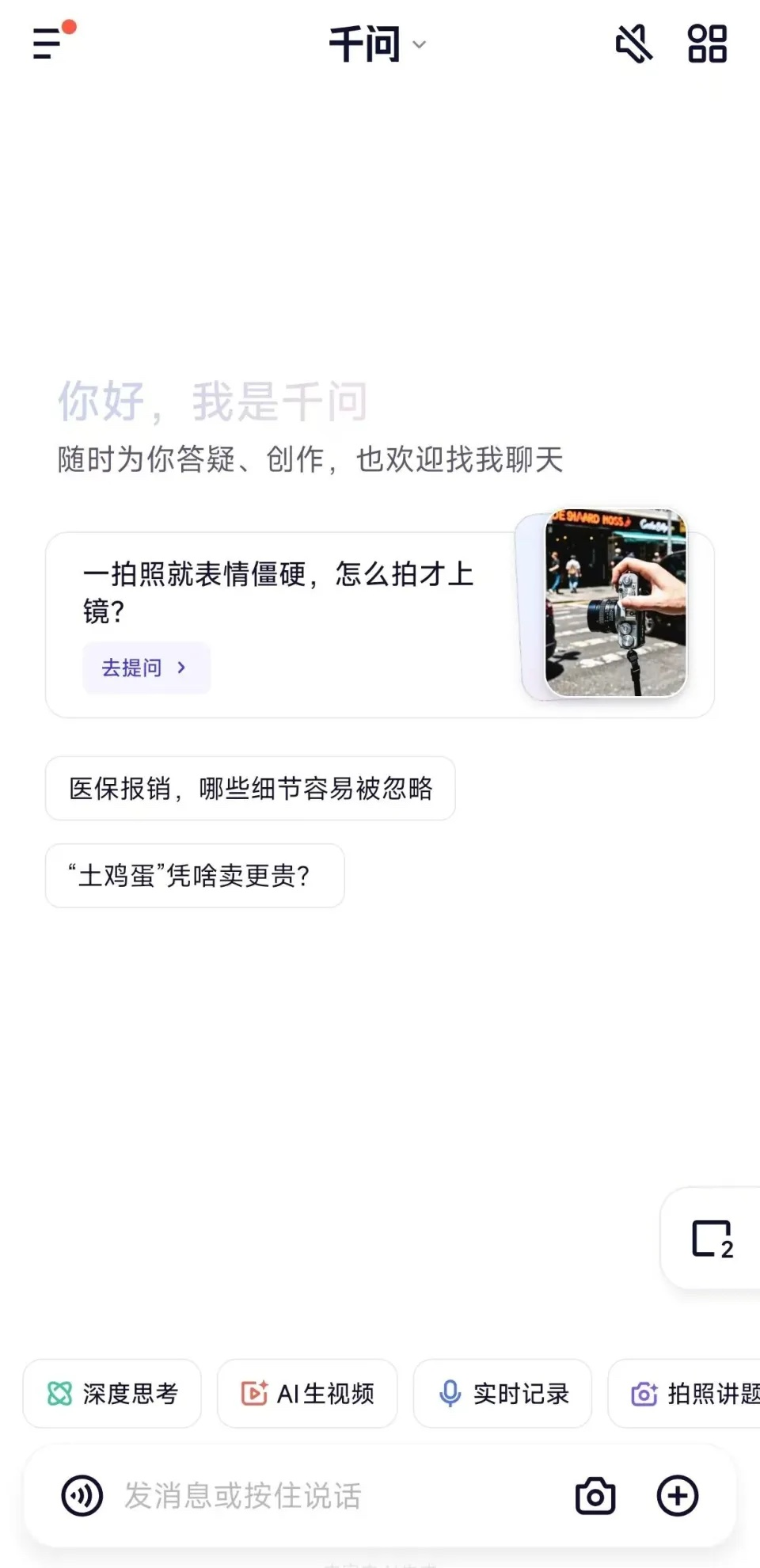 通过千问 App 可以发现,其界面布局与其他原生 AI 应用大致趋同,底部设有交互区域,用户既能通过语音、文字两种方式输入需求,也可上传图片、文档、录音等各类素材。与其他模型有的功能类似,千问也有 AI 生图、智能写作、拍照讲题、翻译等同类产品常见的核心功能。