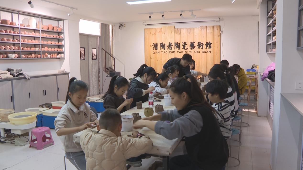近日,在周腾创办的“潜陶者·陶瓷艺术馆”中,二十多位手工爱好者正围坐在一起制陶,他们将手中的泥条一圈一圈地盘筑成杯、碗、笔筒的雏形。其中既有“老手”,也有新人,更多的是在家长带领下尽情发挥创意的小朋友。