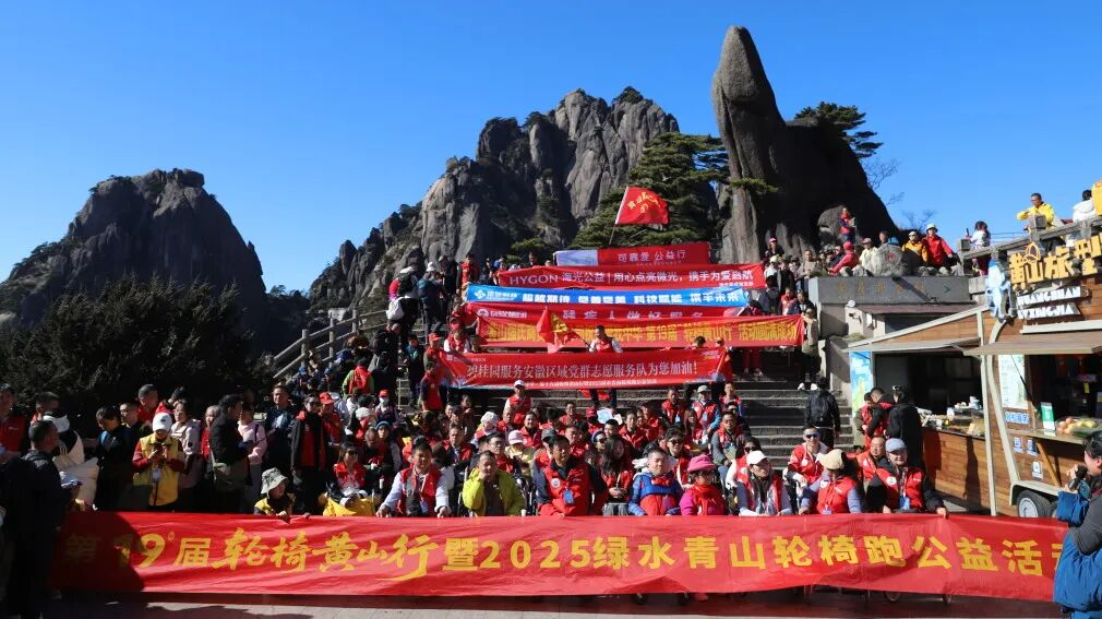 当阳光穿透黄山的云海,洒在花岗岩峰林之上,一群特殊的攀登者已在迎客松前留下了他们灿烂的笑容。2025年11月29日至30日,为期两天的“爱我中华·第十九届轮椅黄山行暨2025绿水青山轮椅跑”公益活动圆满举行。本届活动以“‘两山’惠民,科技助残”为主题,旨在让残疾人群体也能平等享受绿水青山的生态福祉,是科技与人文共助社会融合的生动实践。