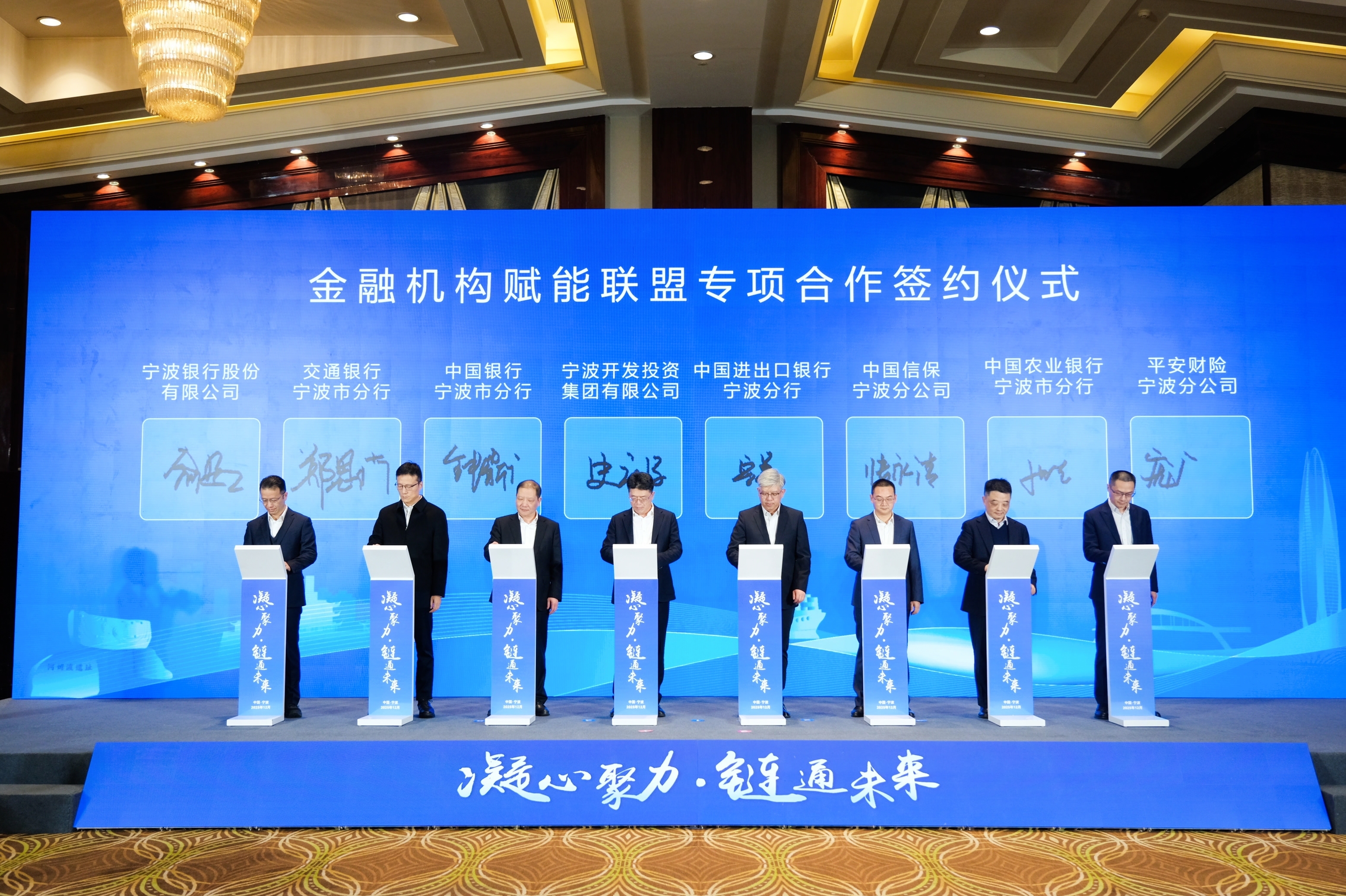 金融支持是产业发展的重要保障。活动现场,宁波开投集团代表宁波市大宗商品全产业链联盟与中国进出口银行宁波分行、中国出口信用保险公司宁波分公司、中国银行宁波市分行、中国农业银行宁波市分行、交通银行宁波市分行、宁波银行股份有限公司、平安财险宁波分公司等七家主要金融机构代表共同签署金融赋能联盟发展专项合作协议。作为联盟理事长单位,宁波开投集团将充分发挥引领带动作用,锚定宁波万千亿级产业集群,做强做专优势贸易品类,提速重点项目延链补链,携手各方共同提升宁波供应链稳定性和竞争力,为宁波打造开放强市和建设国家战略资源配置中心做出更大贡献。”