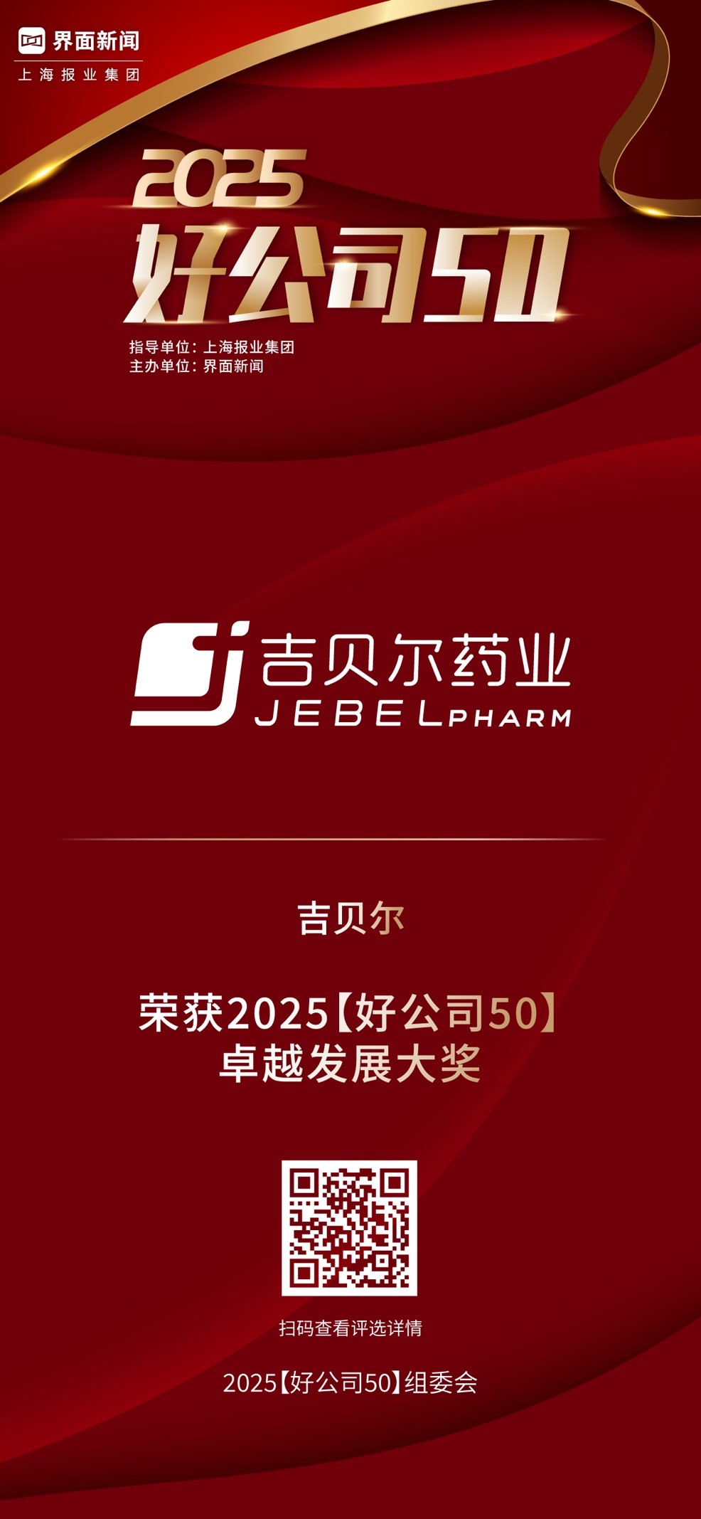 其中,吉贝尔凭借优异表现荣获【2025好公司50】卓越发展大奖。