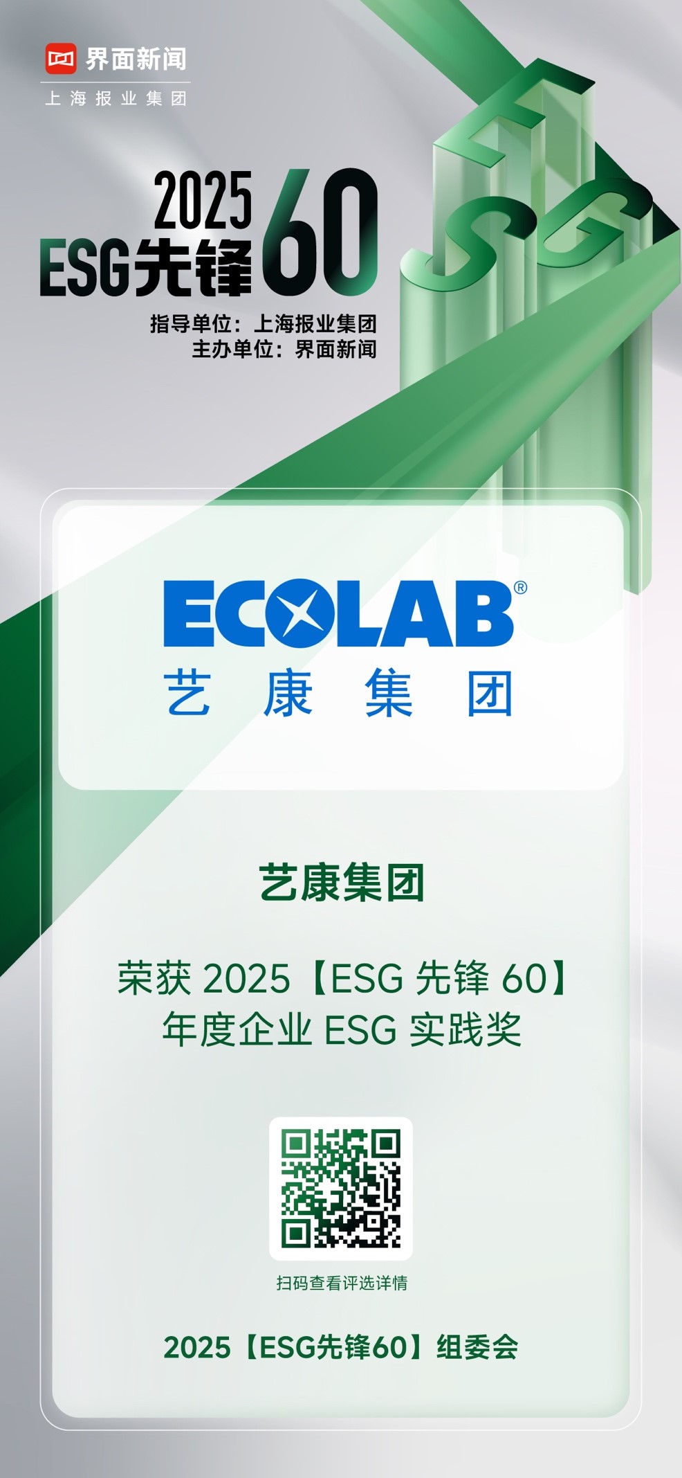 其中,艺康集团荣获2025【ESG先锋60】年度企业ESG实践奖。