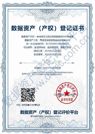向海图强,数智赋能。此次数据资产的成功入表,是青岛旅游集团推动“资源数字化、数据资产化、资产资本化”的生动实践。下一步,集团将持续深化数据要素市场化配置改革,加速推动数据资产在金融服务、行业监测、精准营销等场景的落地应用,真正让“沉睡”的数据资源变为“流动”的新质生产力,为青岛建设国际滨海旅游目的地贡献强劲的“数字引擎”。