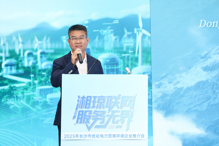 长沙市发展和改革委员会党组成员、副主任王莎莉在讲话中特别提到,“十四五”时期是长沙电力事业实现跨越式发展、营商环境“获得电力”指标实现系统性提升的五年。国网长沙供电公司在过去五年坚决践行国企使命担当,交出了一份亮眼的成绩单。在电网投资和供电能力方面,长沙连续打赢多轮“630 攻坚”战,供电能力大幅提升至 1300 万千瓦,为全市经济社会高质量发展筑牢能源基石;在办电服务方面,国网长沙供电公司的“三零三省”服务深入实施,“阳光业扩”“一件事一次办”全面落地,办电环节与时间持续压减,实现从“客户等电”到“电等客户”的服务升级,同时“村网共建”实现服务窗口乡镇村组全覆盖,打通服务 “最后一百米”;在惠企利民方面,国网长沙供电公司主动服务复工复产,精准传导电价红利,强力推进“专改公”等民生改造,惠及居民超 30 万户,创新“1+3+N”专属服务机制,为企业提供全生命周期用能指导,助力企业降本增效。这些举措都显著提升了企业和群众的用电获得感、满意度,为长沙连续获评中国营商环境评价标杆城市贡献了关键“电力力量”。对于本次活动,她指出,“湘琼联网,服务无界”是优化营商环境从“市内通办”向“跨省通办”的新跨越,为企业“研发在湖南、生产在海南”布局提供“保姆式”电力支撑,电力服务已升级成为助推湘琼合作的“加速器”。