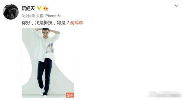 6月5日,杨幂发布“服药”的自拍艾特阮经天,而阮经天则以“尬舞”的方式艾特杨幂,前者谐音“扶摇”,后者则以“舞技”谐音“无极”,花式官宣男主,确认了两人此次的合作。