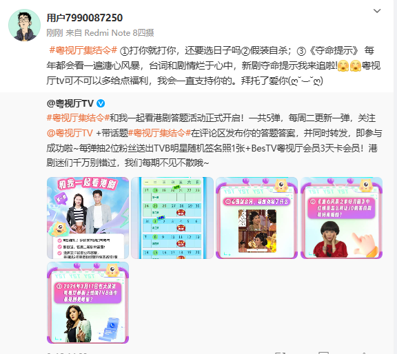 被赋予仪式感和互动感的产品反馈过程,构建了从意见收集、成果公示到承诺改进的完整信任闭环。于用户而言,这是从单向传播到双向对话的体验升级;于品牌而言,这也是粤视厅TV与用户建立深度联结、共创新价值的过程,让“港剧内容最全、画质最清、用户体验最佳”的承诺,以更生动、更扎实的方式落地。