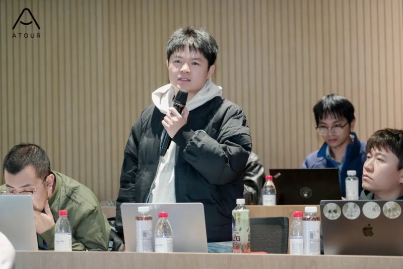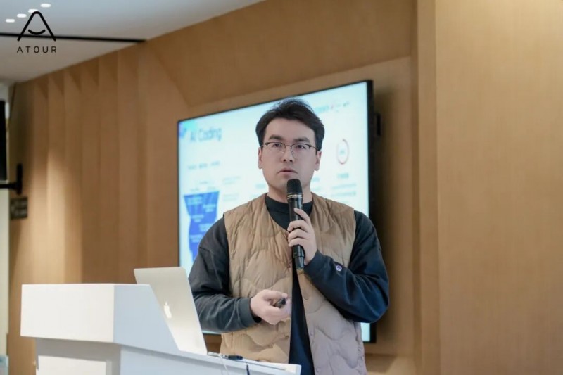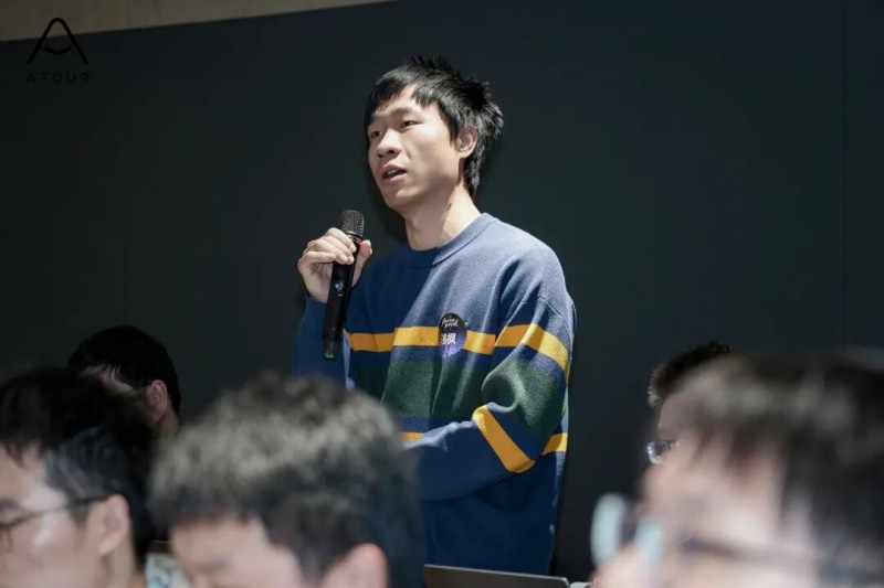 亚朵技术骨干现场提问:“AI在研发全流程中如何平衡提效与代码安全?”胡鹏程详细介绍了汇付的质量监控体系与数据预处理机制,强调人工最终决策的重要性。