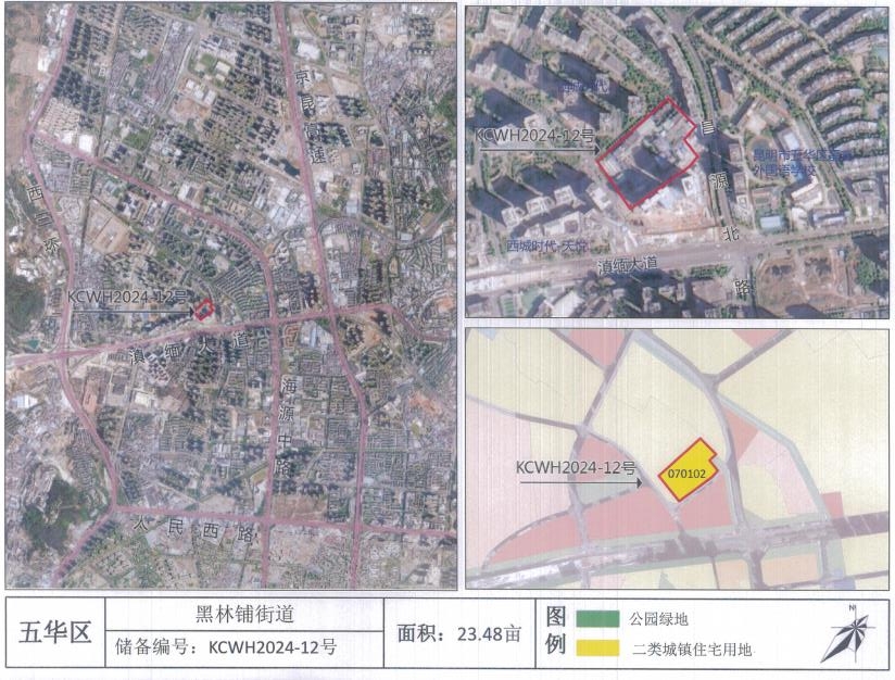 编号KCWH2024-2-A1、A2-1、A2-3、A3-1、A3-3号地块,共计5宗,则被五华区国投旗下平台公司昆明市五华区绿色城市更新改造有限责任公司底价约2.4亿元摘得,成交楼面价约1078-1239元/㎡。