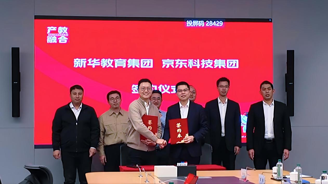 中国东方教育集团电脑事业部常务副总经理邓兴华、重庆新华电脑学校副校长臧金勇、北京新华电脑学校校长助理王志等领导嘉宾共同出席。京东科技集团政企事业部北区总经理郑艺等高层代表一同见证签约。