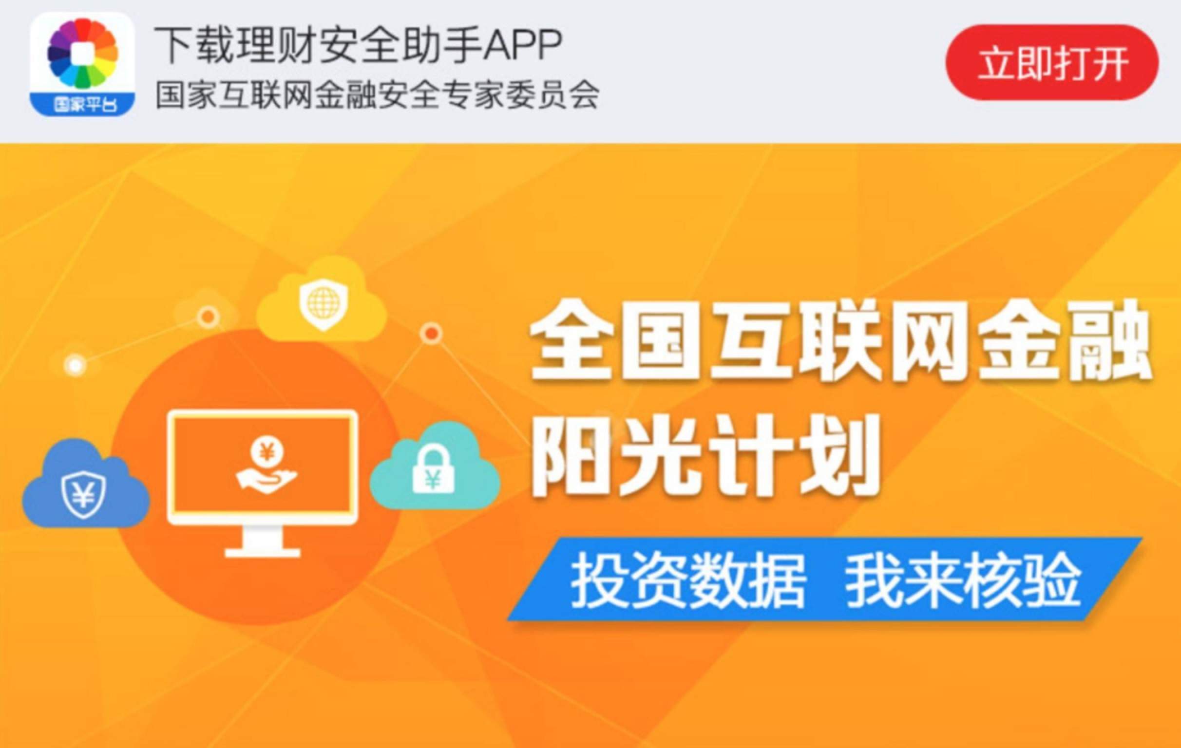 6月5日,国家互联网金融安全技术专家委员会(以下简称“国家互金专委会”)正式启动“全国互联网金融阳光计划”(以下简称“阳光计划”),并正式面向普通投资者推出理财安全助手APP,旨在促进互联网金融企业透明化运营、阳光下发展。这是互联网金融在信息披露方面的又一重大进展。