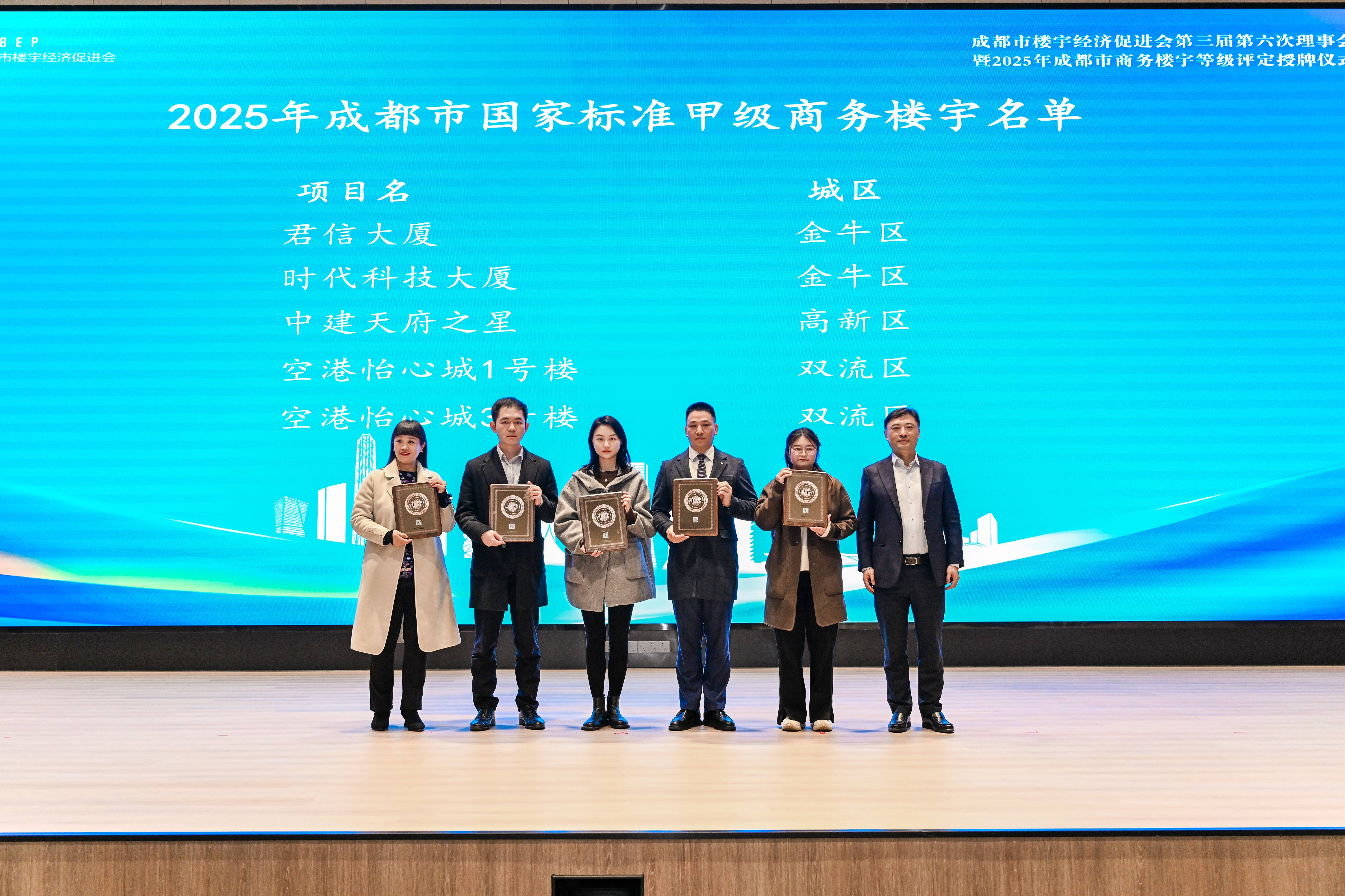 12月12日,2025年成都市商务楼宇等级评定授牌仪式举行,其中,金牛区君信大厦、时代科技大厦获授“成都市国家标准甲级写字楼”,蓝海总部产业园被授牌“成都市专业特色楼宇”。截至目前,金牛区已有甲级写字楼7栋,成都市专业(特色)楼宇18栋。