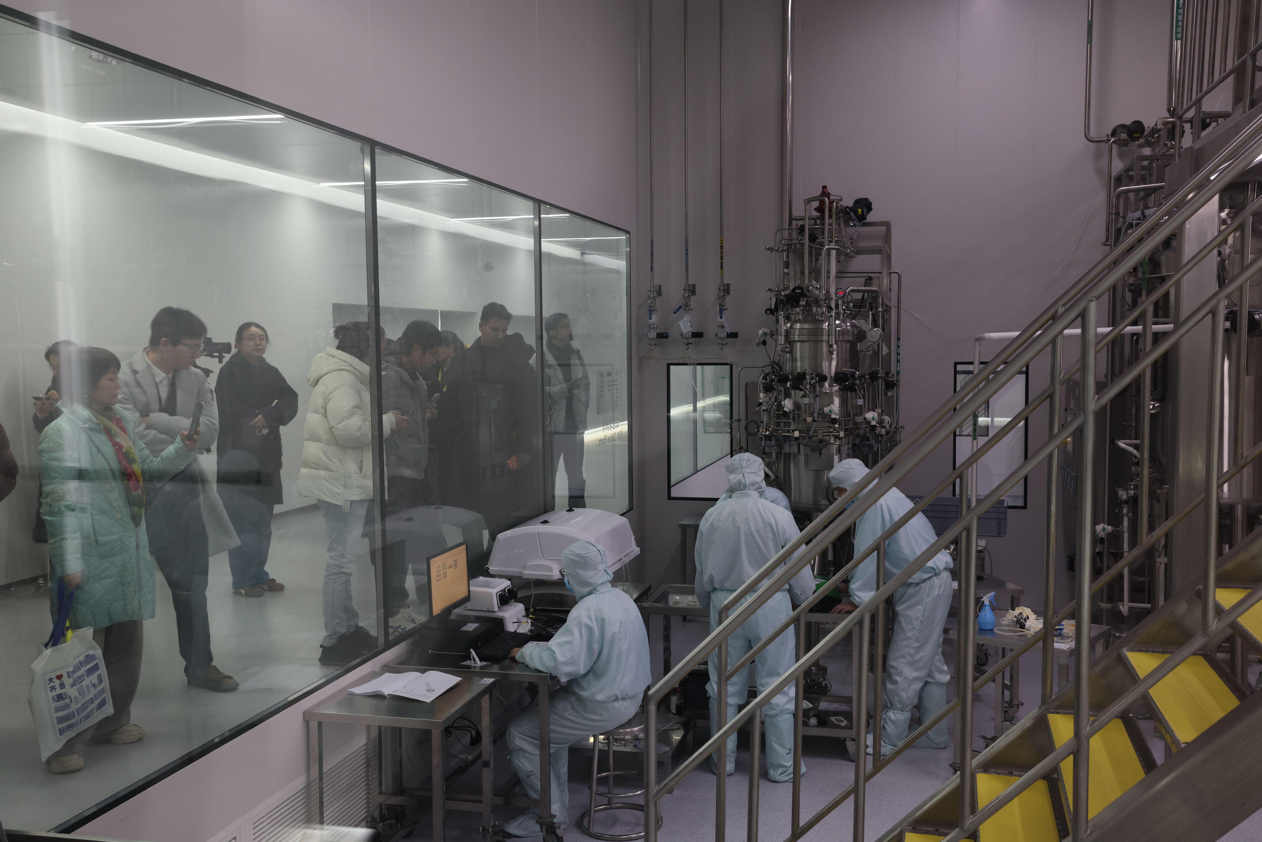 在真核原液车间,调研团观摩了国内目前规模最大的商业化生物药原液生产基地。该基地掌握着活细胞大规模培养技术,使齐鲁制药具备了与国际医药头部企业同台竞技的产业化能力,为加速创新生物药上市提供了坚实保障。相关负责人介绍,2024年4月,在此诞生的雷珠单抗注射液成功出口欧洲13个国家,成为首个登陆欧盟市场的国产眼科生物制剂。“这标志着中国生物药在国际高端市场获得了认可,也展现了齐鲁制药在生物医药领域的创新实力与国际化水平。”