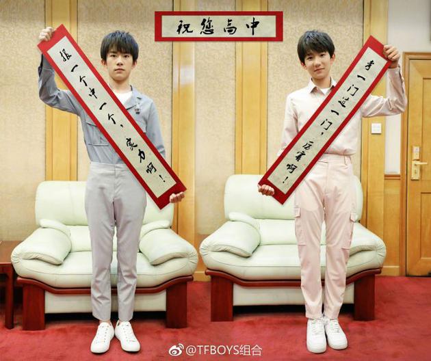 王俊凯参加高考,王源易烊千玺晒对联加油打气