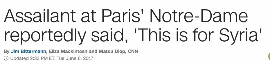 【巴黎圣母院工作人员遇袭 袭击者高喊“为了叙利亚”】法国巴黎当地时间周二下午,一名男子用锤子袭击了一名巴黎圣母院工作人员。法国内政部长杰拉德·科隆(Gerard Collomb)透露,该男子在袭击时高喊“为了叙利亚”。科隆表示,经调查,该袭击者是来自阿尔及利亚的学生,袭击时身上还携带有刀具。受害者目前伤势并不严重。