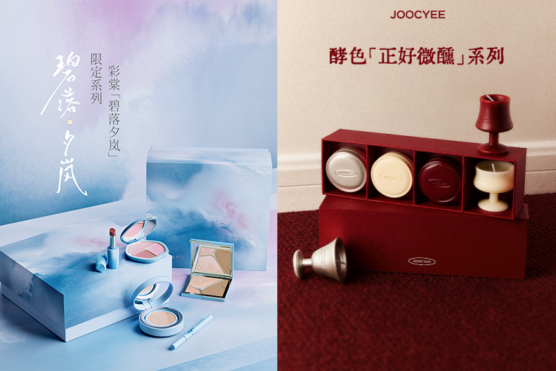 彩棠“碧落夕岚”系列(左);酵色“微醺”系列”(右)