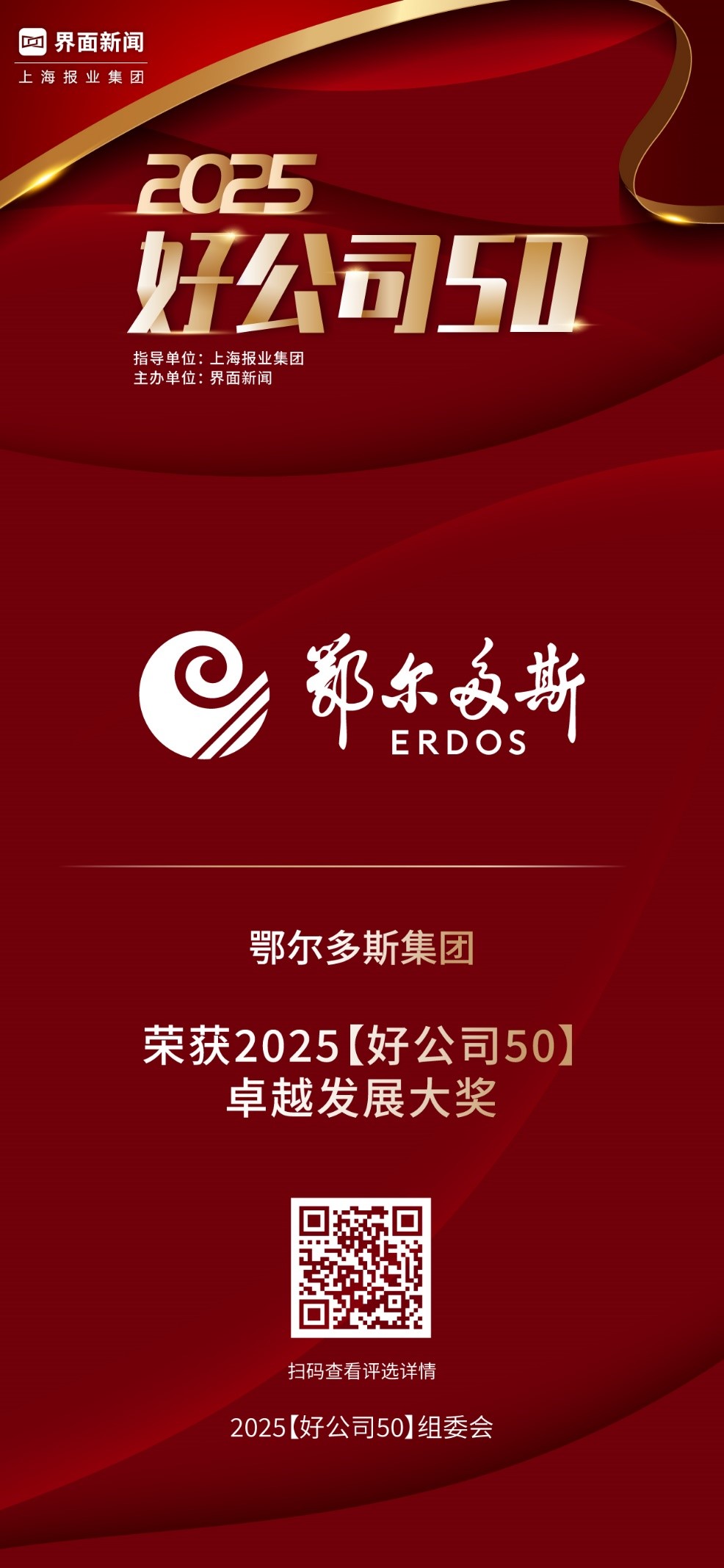 其中,鄂尔多斯集团凭借优异表现荣获【2025好公司50】卓越发展大奖。