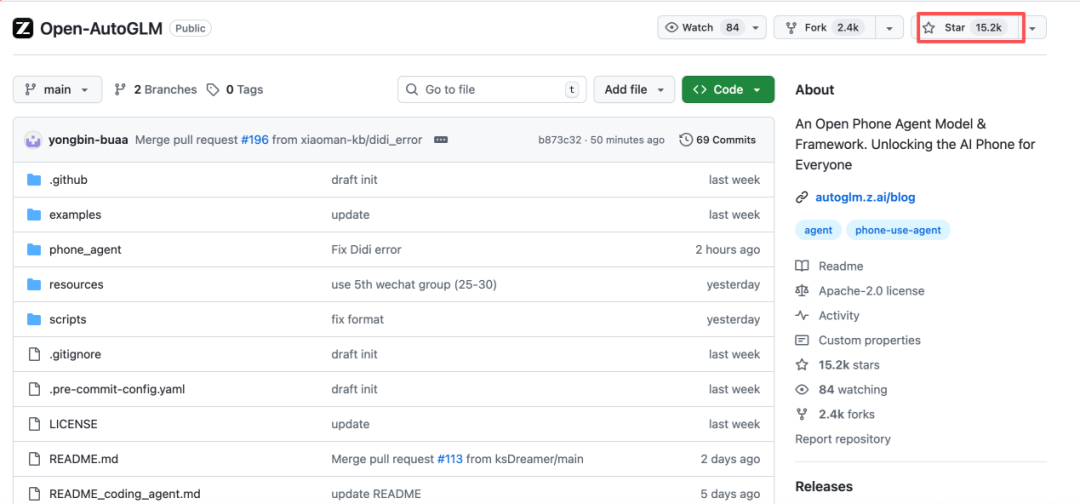 集成程度差异:豆包是系统级、软硬一体;AutoGLM是外挂型组件;产品体验一致性不足:前者开机就能用,后者往往需要一定的技术门槛。但这并不妨碍它在开源社区的走红:项目开源仅48小时,GitHub Star数从0飙升至8K,截至12月15日,已突破15K。