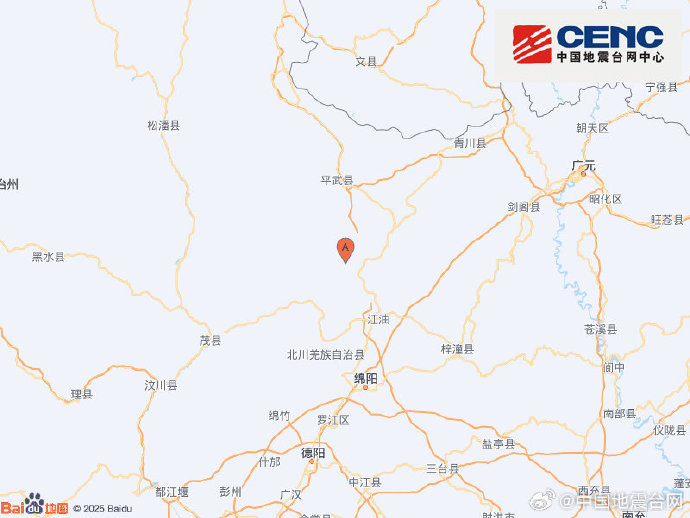 四川绵阳市平武县附近发生3.5级左右地震