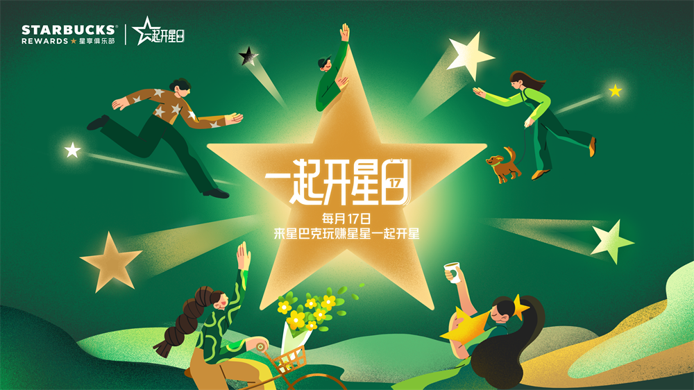 今后,每月的17日,星巴克星享俱乐部的会员们都将迎来他们的专属节日——“一起开星日”。在这一天,星巴克会员不仅可以积累更多好礼星星,更能享受丰富的星星兑换玩法,让每颗星星都变得更好玩、更有价值!