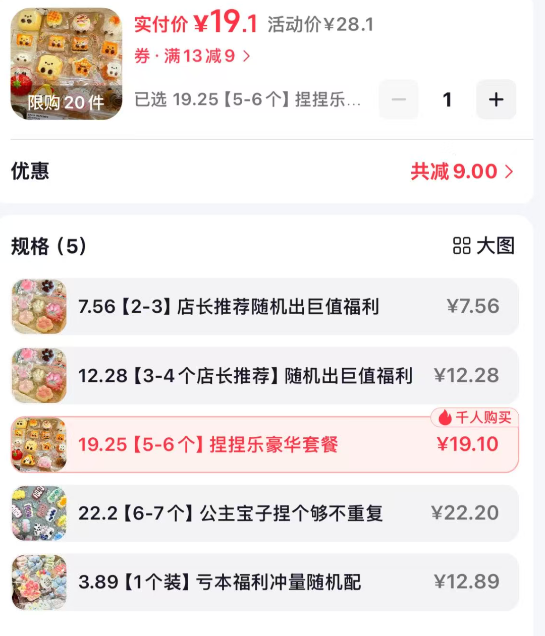 进入捏捏圈仅4个月的小羊,其实很早就对解压玩具,特别是颜值高、手感好且价格亲民的捏捏产生了兴趣。她曾随便在电商平台下单过捏捏福袋,单价仅几块钱的福袋款捏捏散发着廉价胶水和香精混合的怪异气味,宣告了其初次尝试的失败。