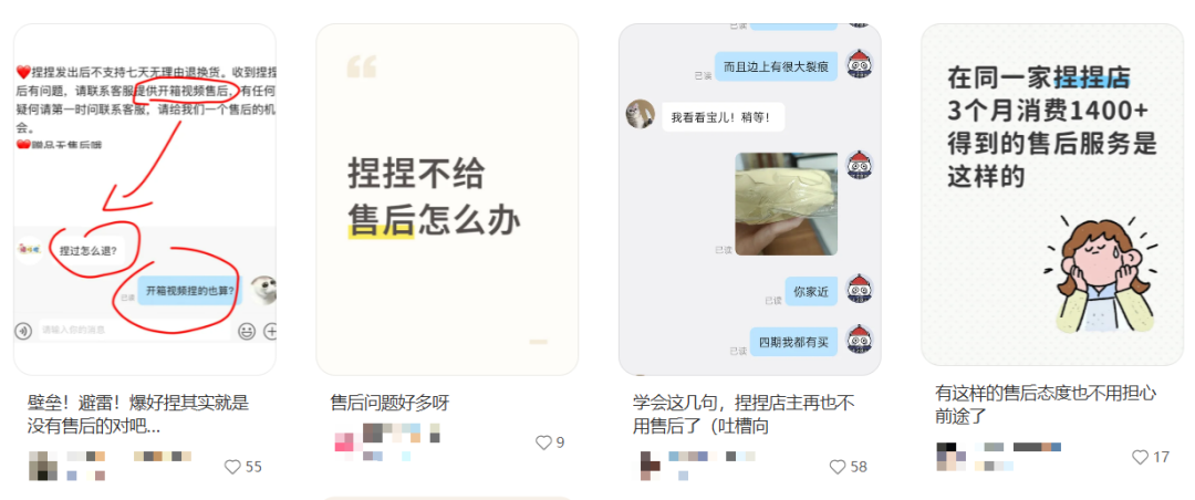 从几次和店铺客服掰扯之后,小羊总算有些明白“多买大店”背后的真实含义实则是“大店会踩雷,小店更没保障”。在捏捏圈想要百分百避雷几乎不可能,玩家们提及的问题大多关乎品控,比如同一款捏捏的不同批次产品造型不同,相同质地的不同捏捏手感存在差异等等;其次便是关于捏捏店铺售后的吐槽,店家和买家间因为踢皮球、冷处理、拒绝退货等问题争论不休。