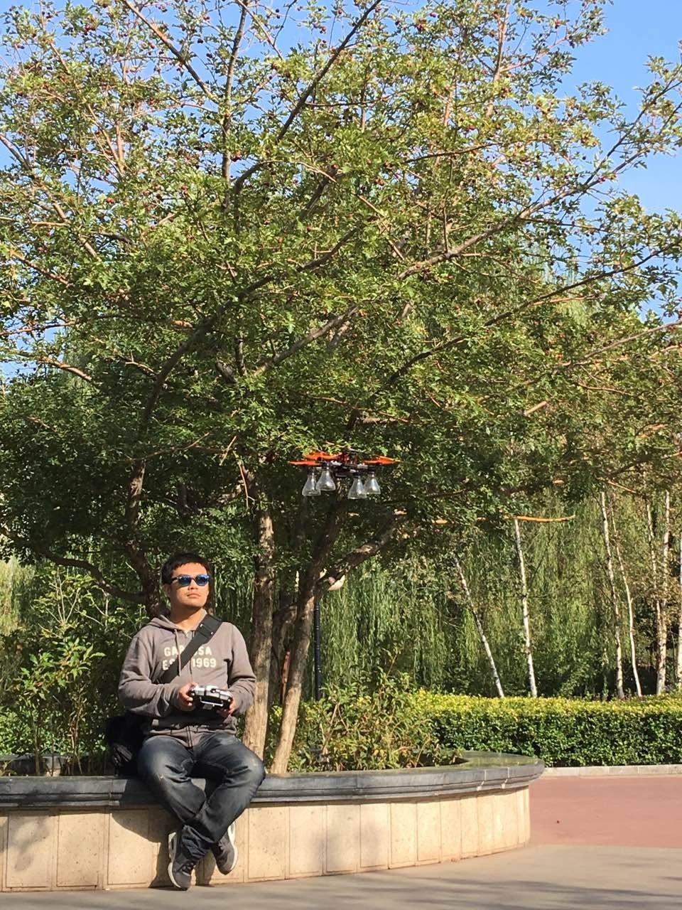 刘晓明正在操作一台四旋翼无人机
