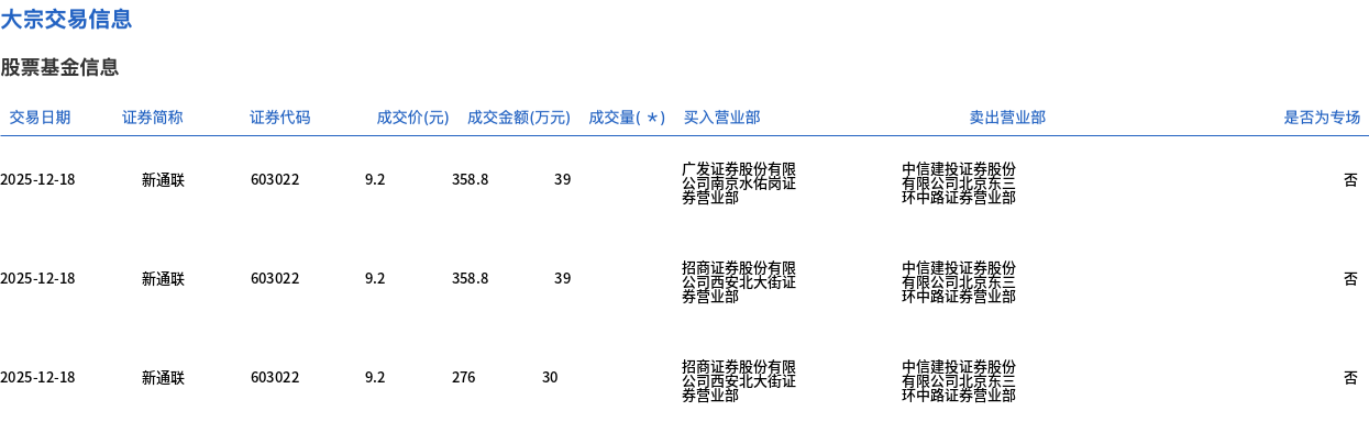 新通联今日大宗交易折价成交108万股,成交额993.6万元