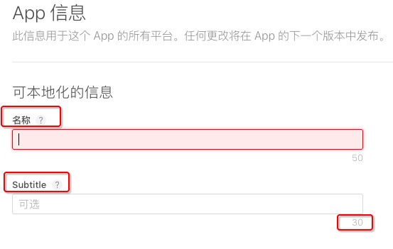 ①增加Subtitle栏,即副标题,30字符,名称栏不变;②增加Promotional Text栏,即促销文本,170字符,在描述栏上面;