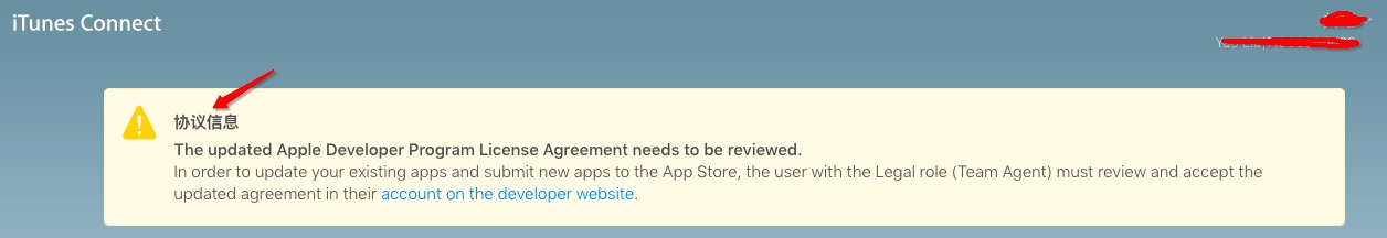 苹果开发者后台协议更新了,有产品的小伙伴赶紧去更新下协议。