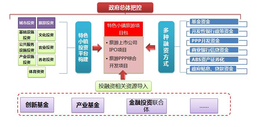 以整合特色小镇下的投融资平台为基础,构建与培育区域旅游上市公司和新三板企业为核心 ,PPP 项目为抓手 ,创新旅游IP导入为驱动,形成创新的旅游投融资模式,推进特色小镇创新发展。