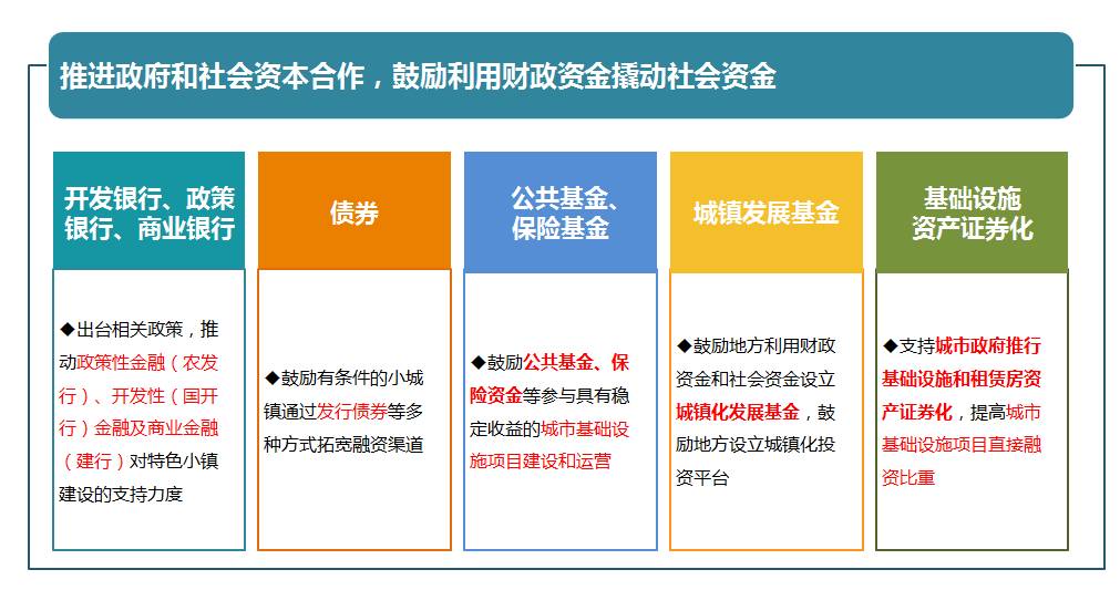 特色小镇PPP模式,是以特色小镇项目为合作载体,让实力较强的企业参与到项目建设中,从而实现政府建设特色小镇的目的,与此同时为社会资本带来一定的投资回报率。政府对于特色小镇PPP项目提供金融支持时还出台了相应的金融政策。