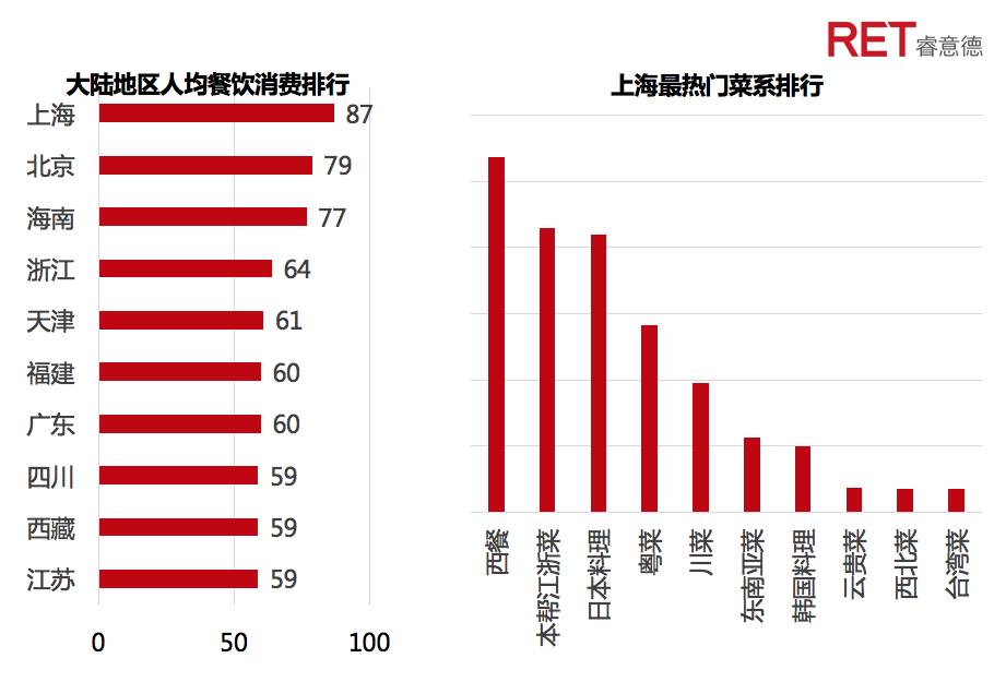 上海对外国美食钟爱有加,三大最热门菜系分别为西餐、本帮菜和日本菜