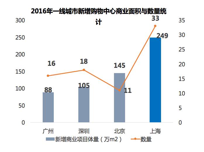 其中2016年全市新增购物中心33家,商业建筑面积达248.7万㎡。