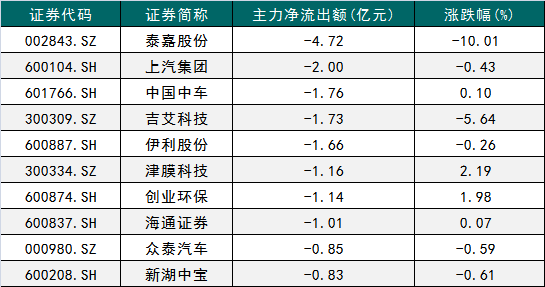 泰嘉股份(002843.SZ)、上汽集团(600104.SH)、中国中车(601766.SH)今日的主力净流出额位居两市个股前三位,分别净流出4.72亿元、2亿元、1.76亿元。在普涨行情下,泰嘉股份成为两市为数不多的跌停股之一。