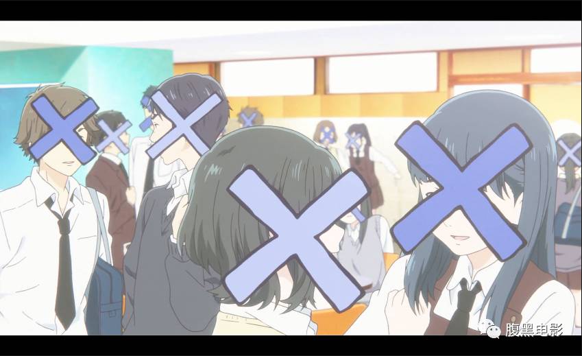 所有人的脸上都打着叉,被欺凌过的将也失去了与别人交流的勇气和能力。