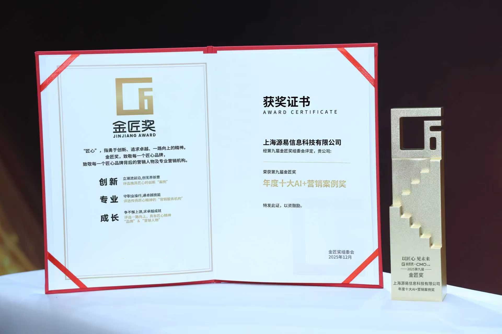 * 该奖项体现了行业对源易信息在品牌营销生态中发挥关键作用、以其专业服务和创新方案持续推动合作伙伴价值提升的充分肯定。
