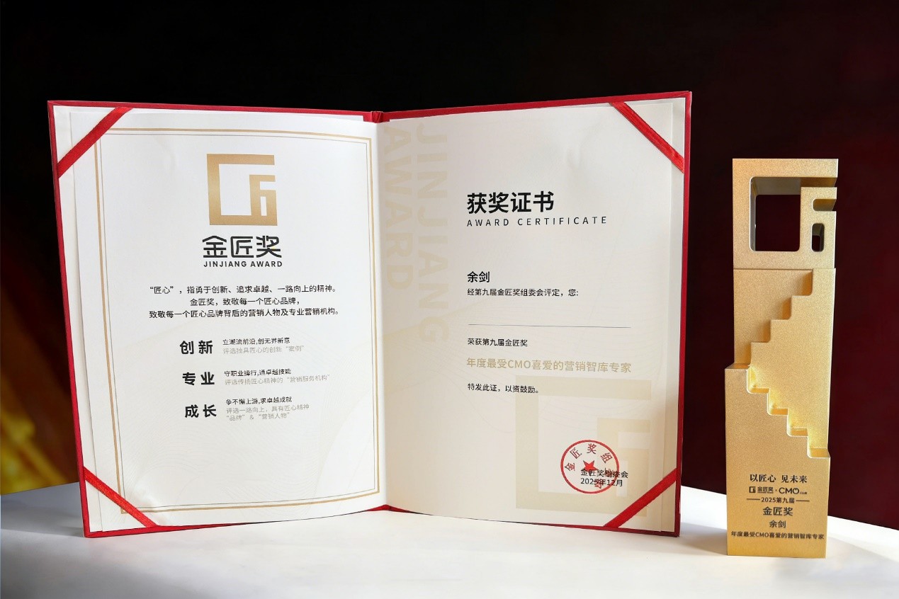 * 源易信息联合创始人余剑先生荣获此重磅个人奖项。该奖项旨在认可为品牌提供前瞻性战略洞见,以专业智慧赋能营销决策的行业智囊。余剑先生的获奖,标志着其深刻的行业洞察力、战略思想及对品牌增长的实战指导价值,获得了众多企业首席营销官的高度评价与信赖。