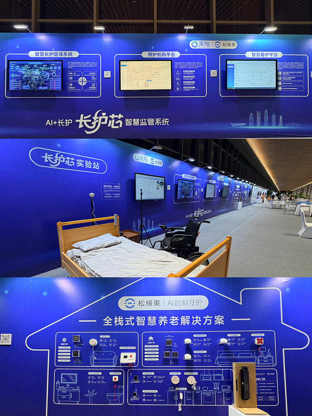 大会现场,天与·松椿果作为行业数字化解决方案的先行者,受邀展示了其引领性的“AI+长护”全场景智慧监管理念与实践成果,为“服务升级”与“产业协同”提供了科技范本。通过深度融合全系列智能硬件与持续迭代的智慧系统平台,天与构建了独具特色的长护险智慧监管闭环。