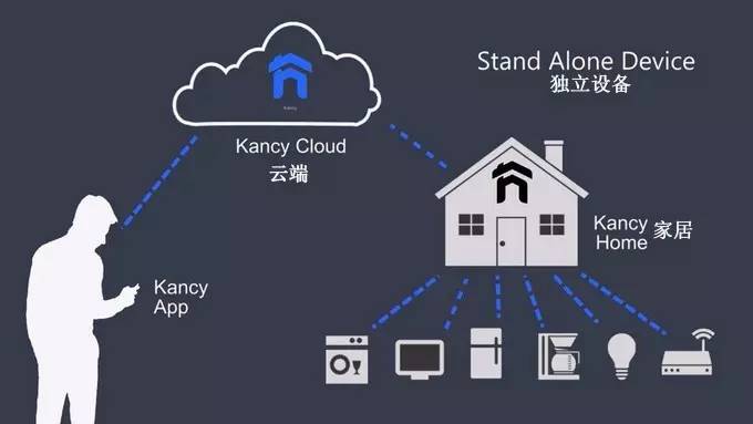 只要 Kancy 连接 WiFi ,即可通过云端,让配套的 APP 实现远程控制各种家居,不必非得同处一个屋檐下。
