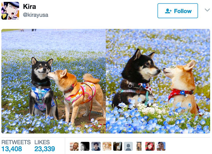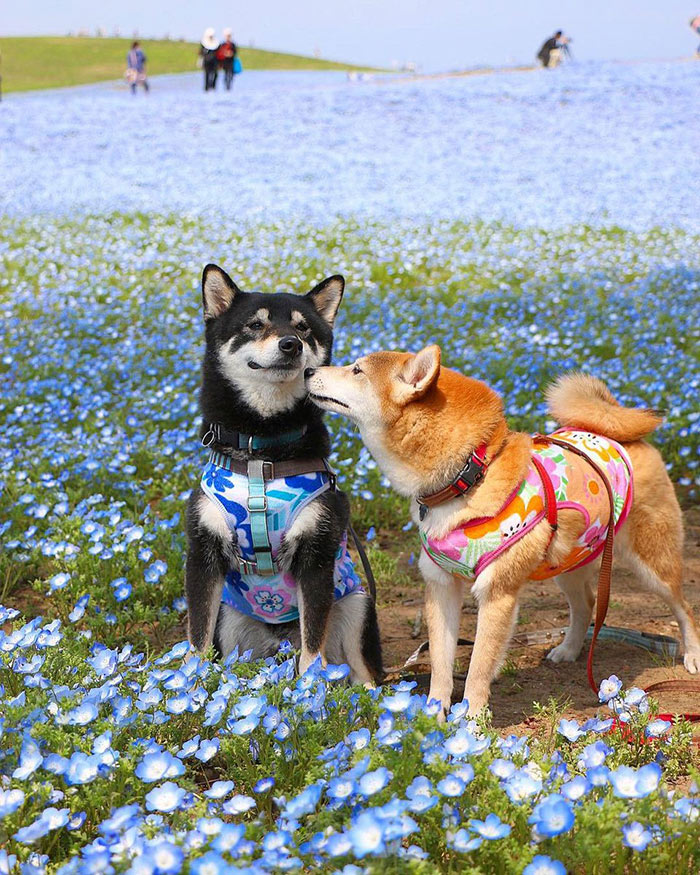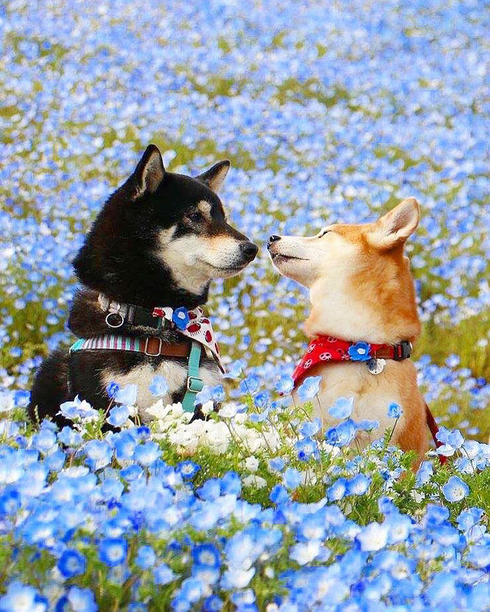 真正的爱情可能只会出现在动物中,比如这对花田中的柴犬,实力诠释了柴犬版的迪斯尼童话故事。