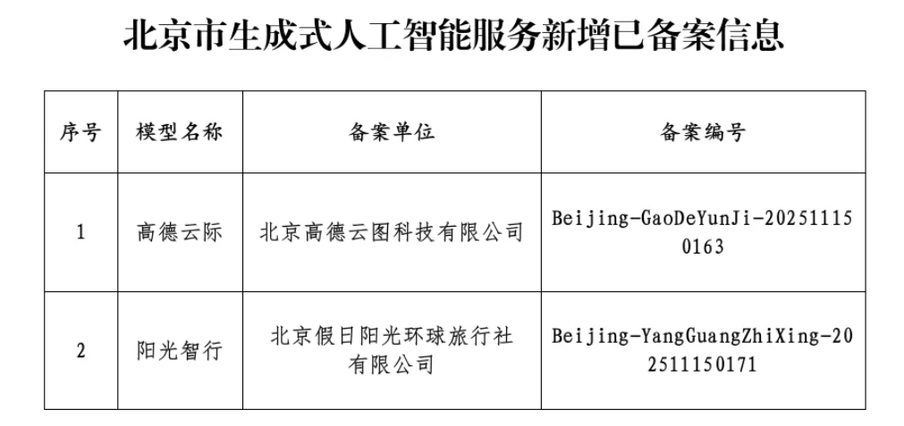 北京市新增2款已完成备案的生成式人工智能服务
