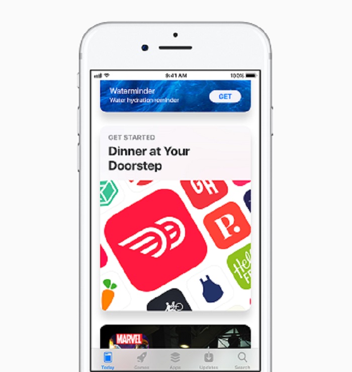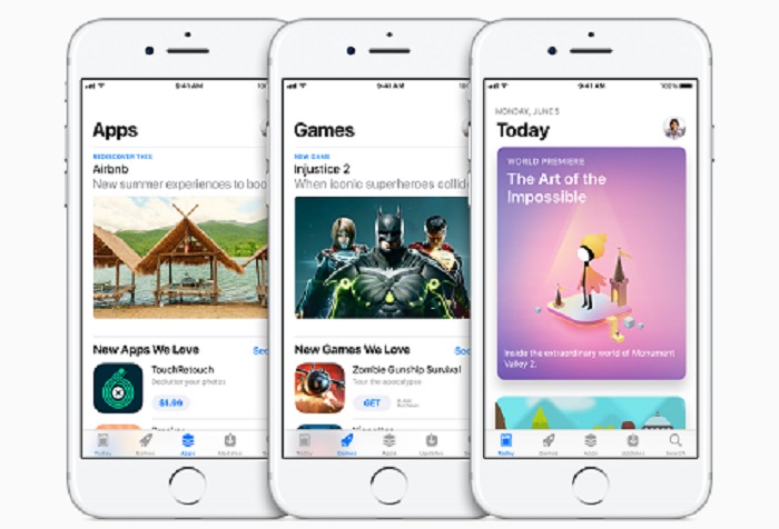 2017年6月6日,苹果官方网站发布“Apple 推出全新 App Store”一文,宣布App Store即将重新设计,取代旧商店的,是加入“应用”、“游戏”和 “Today”标签,以及移除畅销排行的新应用推荐系统。