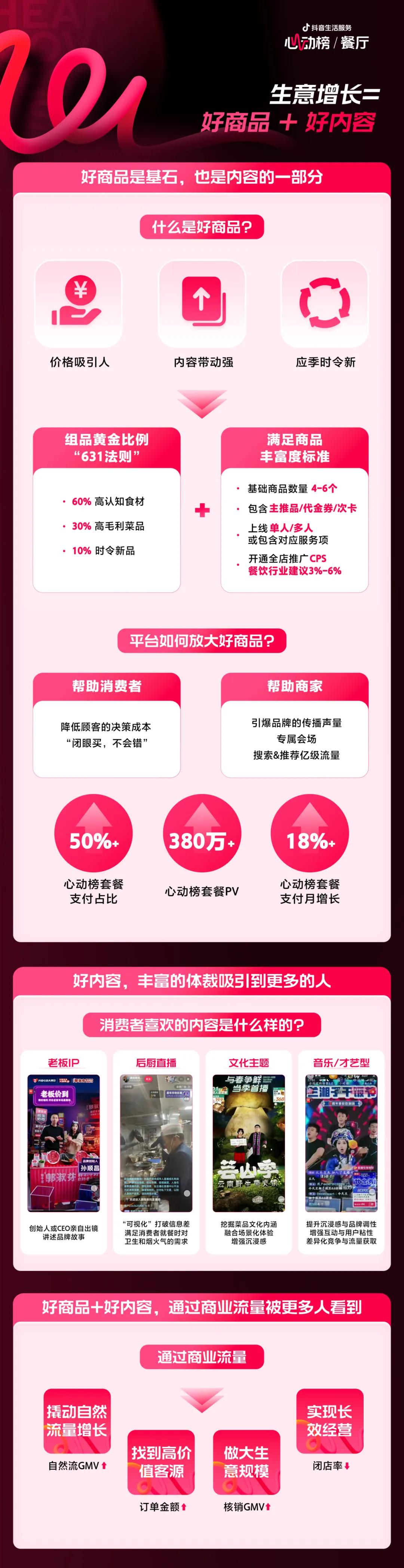 面对消费者的需求升级,心动榜餐厅以“用户心动”为锚点,为商家搭建起“流量+交易”双引擎的增长通道,全方位支撑方法论落地与趋势适配。