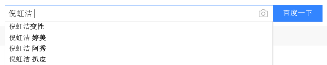 在搜索引擎键入“倪虹洁”,底下出来的第一条是“倪虹洁 变性”。