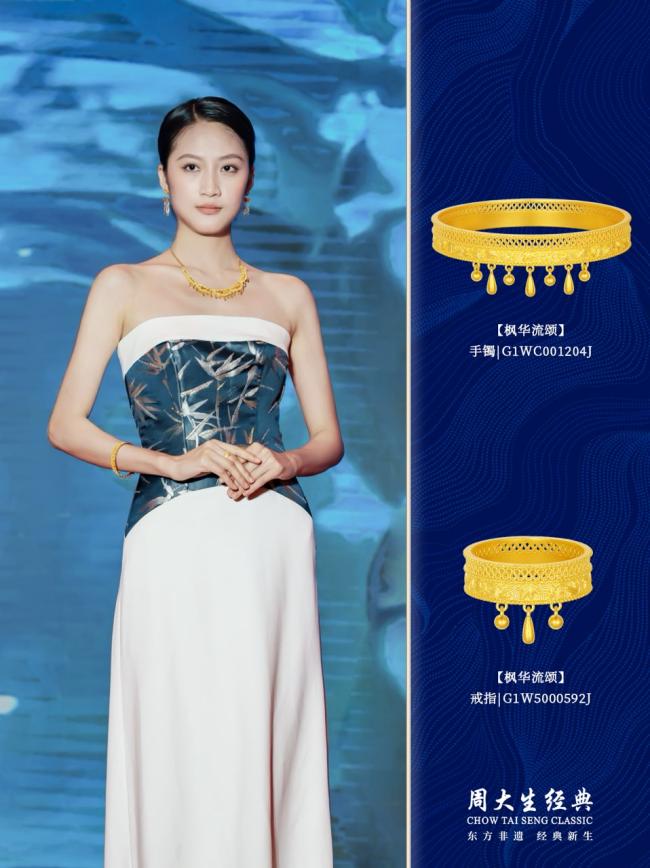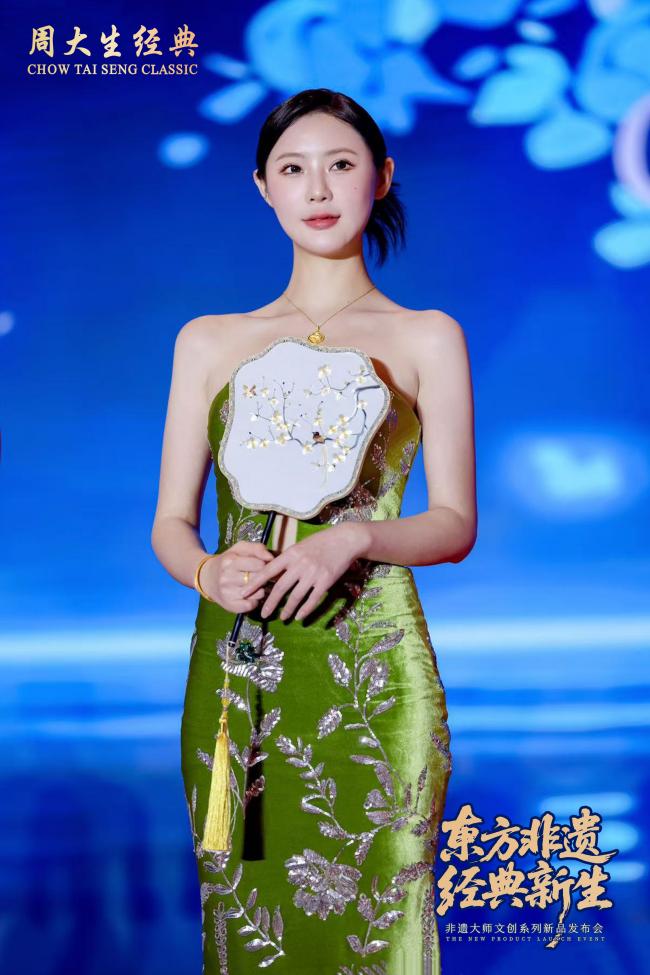 此次互动不仅彰显了非遗大师文创系列在美学意境,与文化内涵上的深厚积淀,更生动诠释了周大生经典在非遗活化传承之路上的笃实践行。随着现场模特的多方位展示,新品在光影流转间徐徐绽放,每一步皆如文化叙事的延展,在动静相宜中,传递出非遗文创珠宝的独特气韵。
