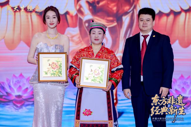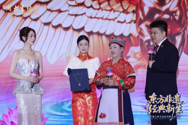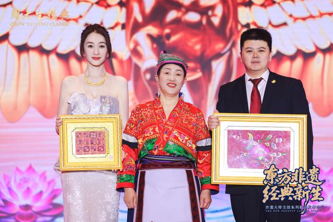 近日,周大生在加盟商大会现场,官宣旗下子品牌周大生经典正式与国家级非遗苗族服饰代表性传承人杨文琴大师达成合作,并重磅发布非遗大师文创系列新品,包括非遗民族服饰灵感系列——衣脉金承,以及非遗刺绣技艺灵感系列——东方·绣。两大系列新品的设计分别融合非遗民族服饰以及非遗刺绣,为传统文化注入当代生命力。周大生经典品牌大使李小冉,周大生董事、专职业务副总经理郭晋惊喜亮相大会现场,共同开启这场非遗文化与黄金艺术交织的非凡盛典。