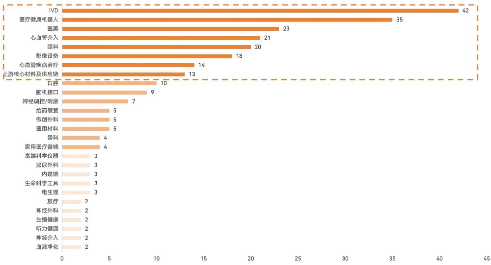 2025年1-10月医疗器械细分赛道融资事件数,数据来源:动脉橙、公开资料