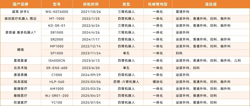 国内获批的腔镜手术机器人产品