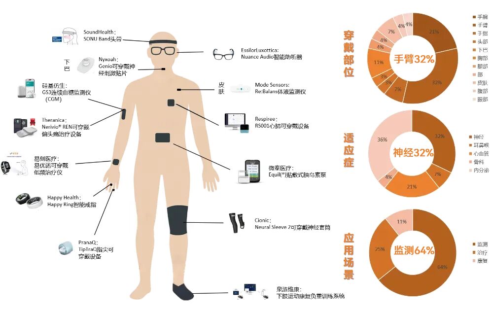 从统计数据来看,可穿戴医疗设备已经呈现出多部位覆盖、多指标集成、多场景贯穿的显著特征。其应用已从日常的步数、睡眠等体征监测,深入至糖尿病、心血管疾病等慢性病的全程管理,实现了从“健康预防”到“疾病干预”的全周期健康覆盖。