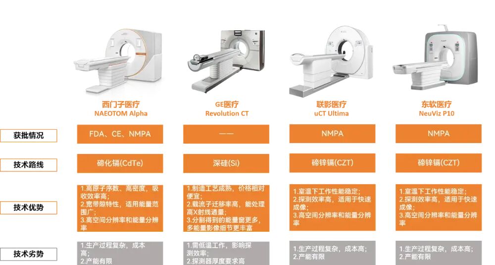 现有光子计数CT代表产品的技术路线
